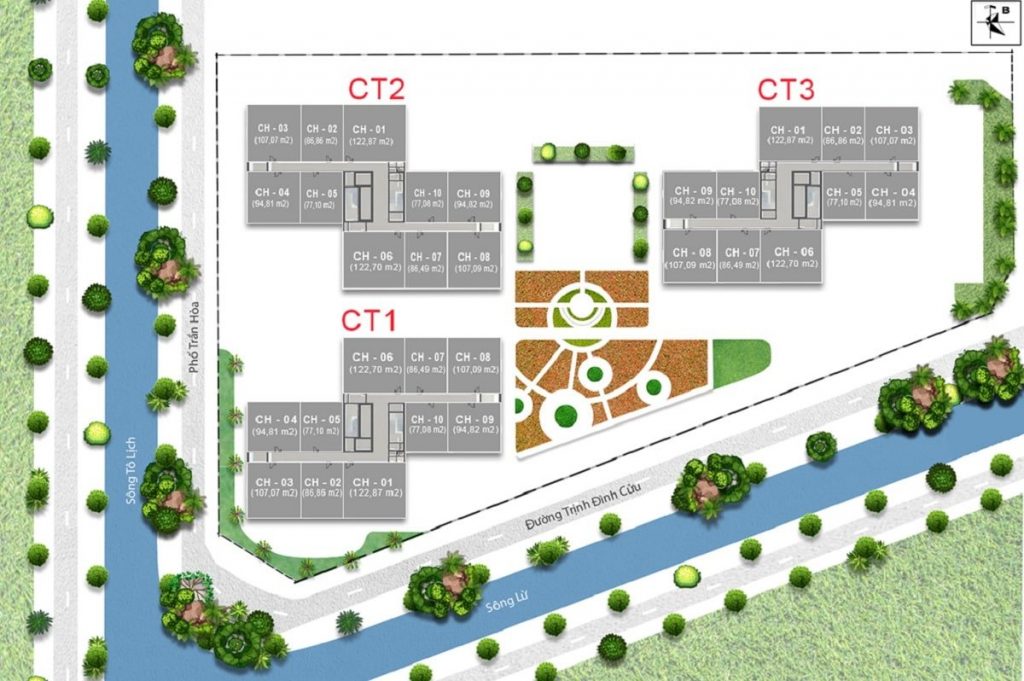 Mặt bằng tổng thể 3 toà căn hộ tại X2 Đại Kim